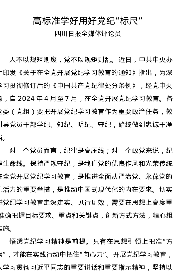 党纪学习教育∣06评论文章:高标准学好用好党纪“标尺”