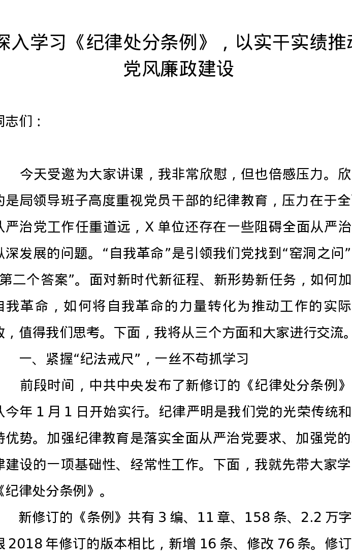 党纪学习教育∣08党课讲稿:深入学习《纪律处分条例》,以实干实绩推动党风廉政建设