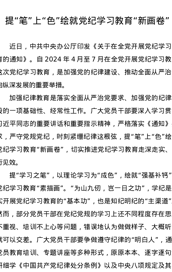 党纪学习教育∣09学习交流:20240405提“笔”上“色”绘就党纪学习教育“新画卷”
