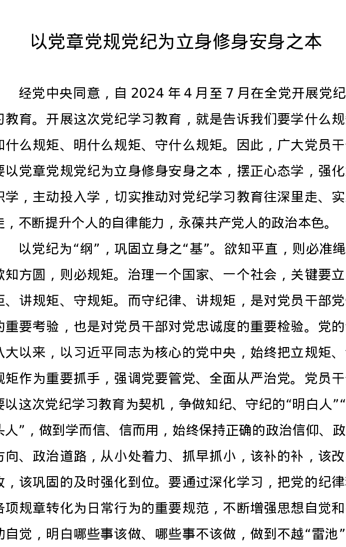 党纪学习教育∣09学习交流:20240407以党章党规党纪为立身修身安身之本
