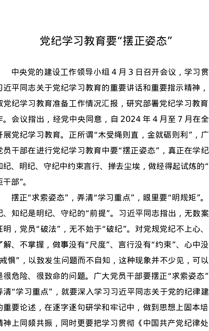 党纪学习教育∣09学习交流:20240408党纪学习教育要“摆正姿态”