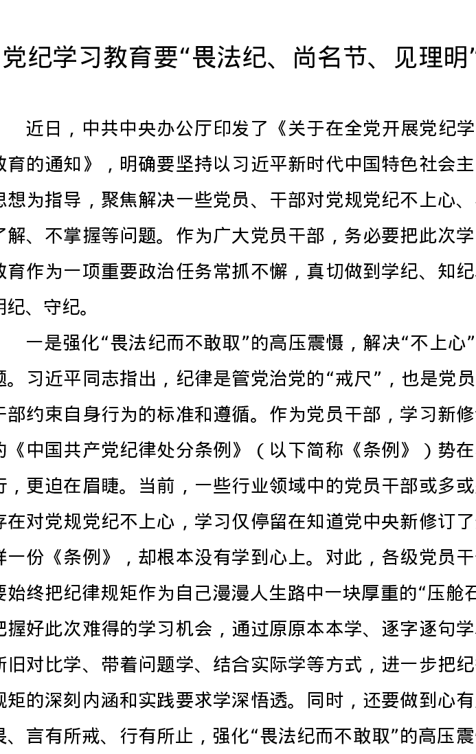 党纪学习教育∣09学习交流:20240408党纪学习教育要“畏法纪、尚名节、见理明”