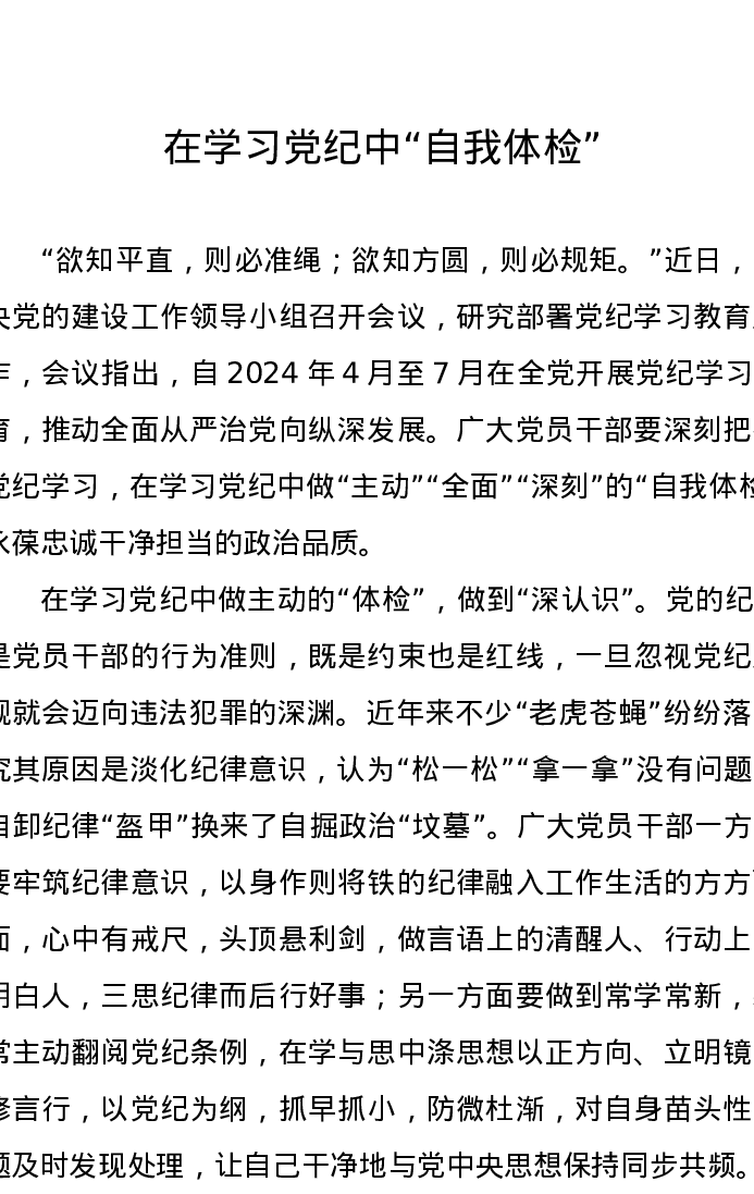 党纪学习教育∣09学习交流:20240408在学习党纪中“自我体检”