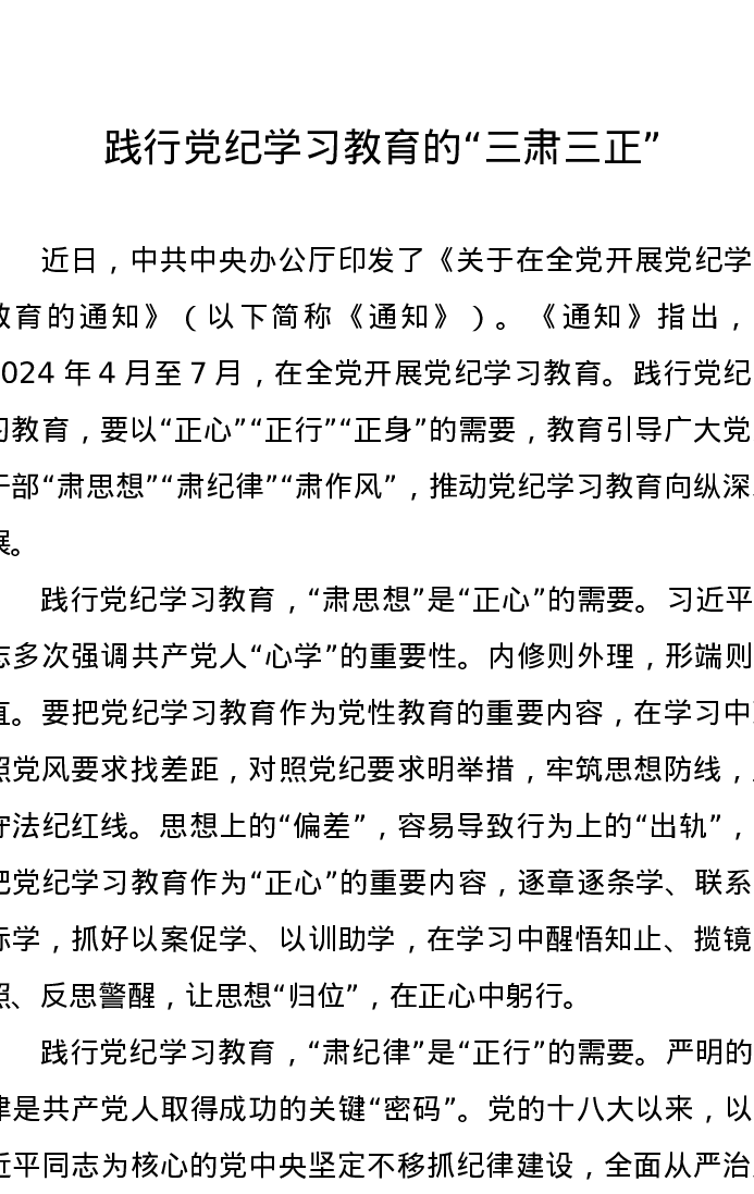 党纪学习教育∣09学习交流:20240408践行党纪学习教育的“三肃三正”