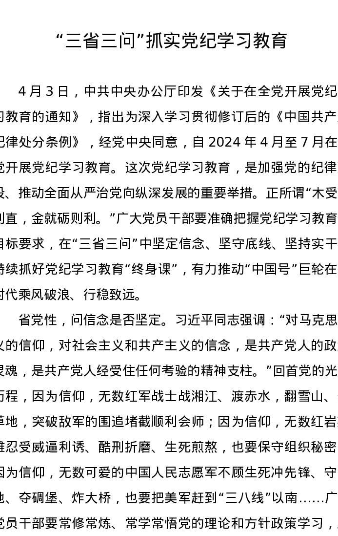 党纪学习教育∣09学习交流:20240409“三省三问”抓实党纪学习教育