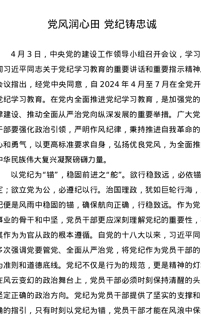 党纪学习教育∣09学习交流:20240409党风润心田 党纪铸忠诚