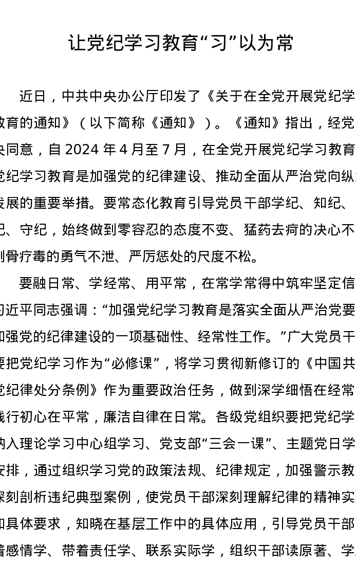 党纪学习教育∣09学习交流:20240409让党纪学习教育“习”以为常
