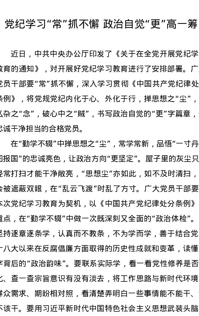 党纪学习教育∣09学习交流:20240410党纪学习“常”抓不懈 政治自觉“更”高一筹