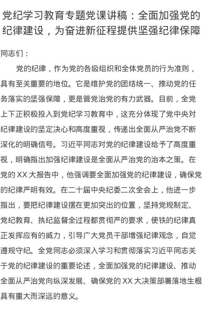 党纪学习教育专题党课讲稿:全面加强党的纪律建设,为奋进新征程提供坚强纪律保障