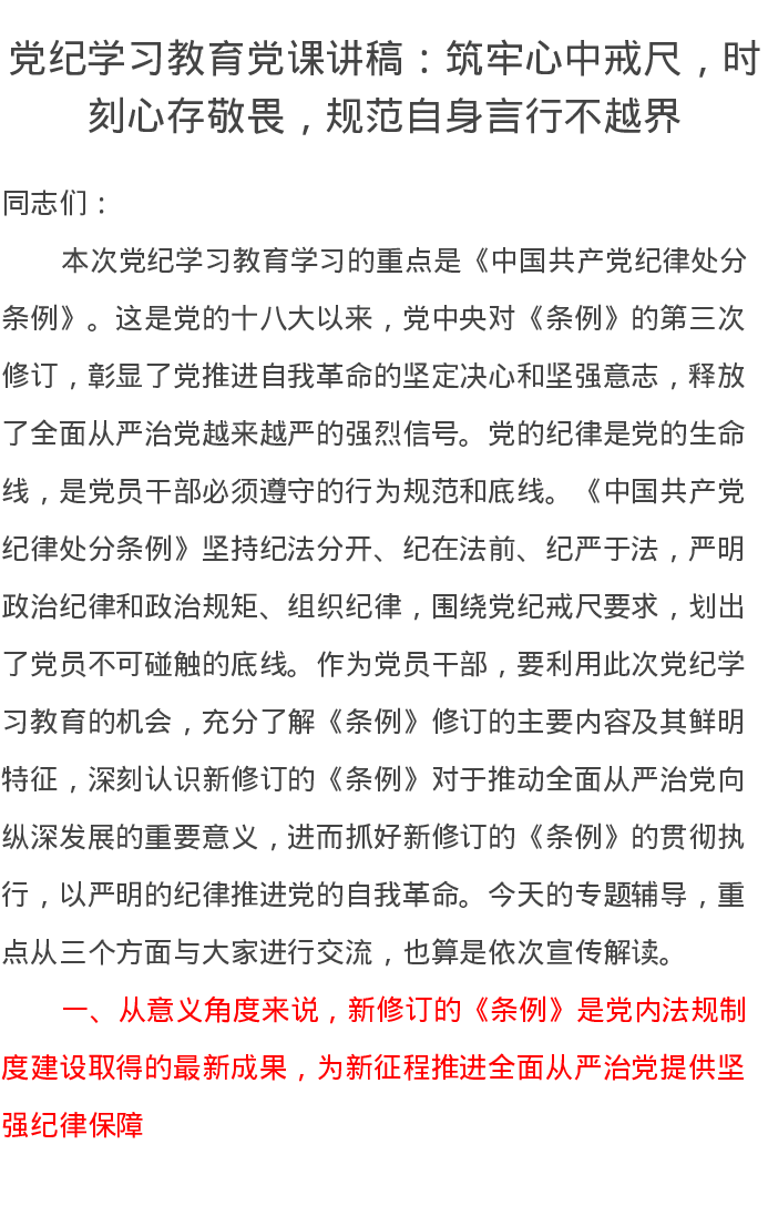 党纪学习教育党课讲稿:筑牢心中戒尺,时刻心存敬畏,规范自身言行不越界