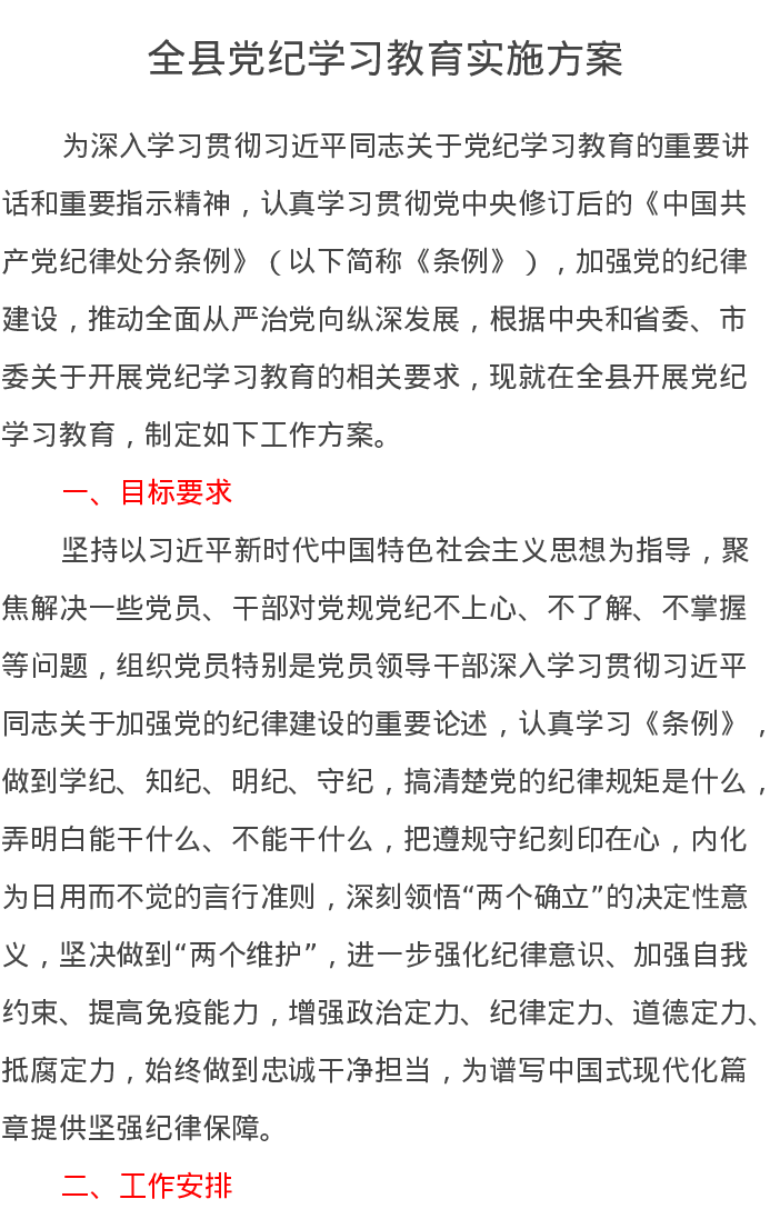 全县党纪学习教育实施方案