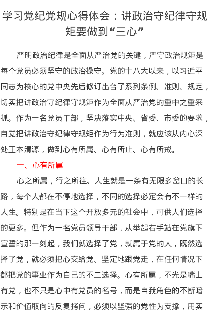 学习党纪党规心得体会:讲政治守纪律守规矩要做到“三心”