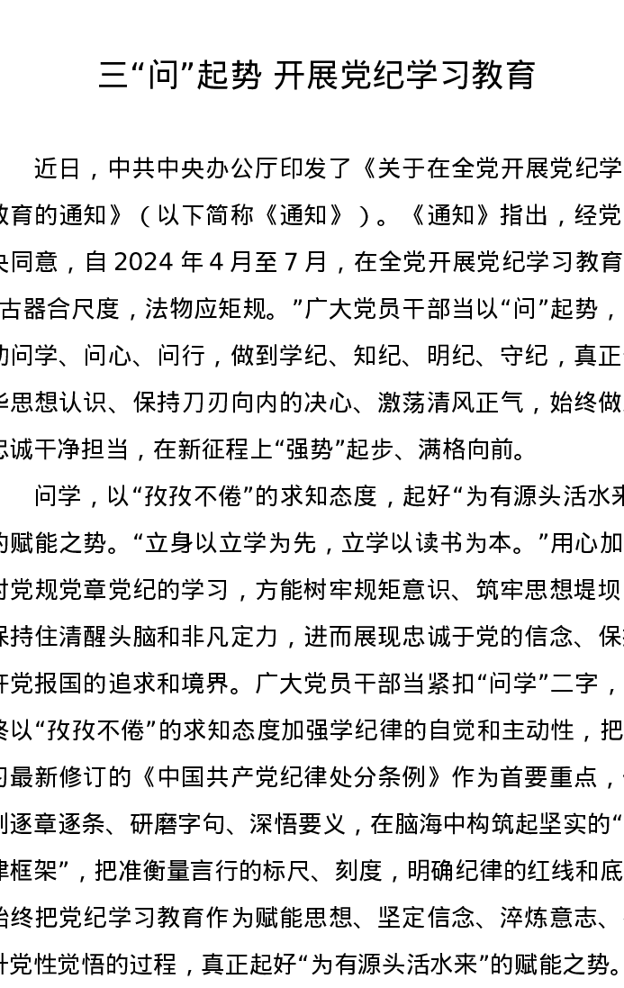 党纪学习教育∣09学习交流:20240410三“问”起势 开展党纪学习教育