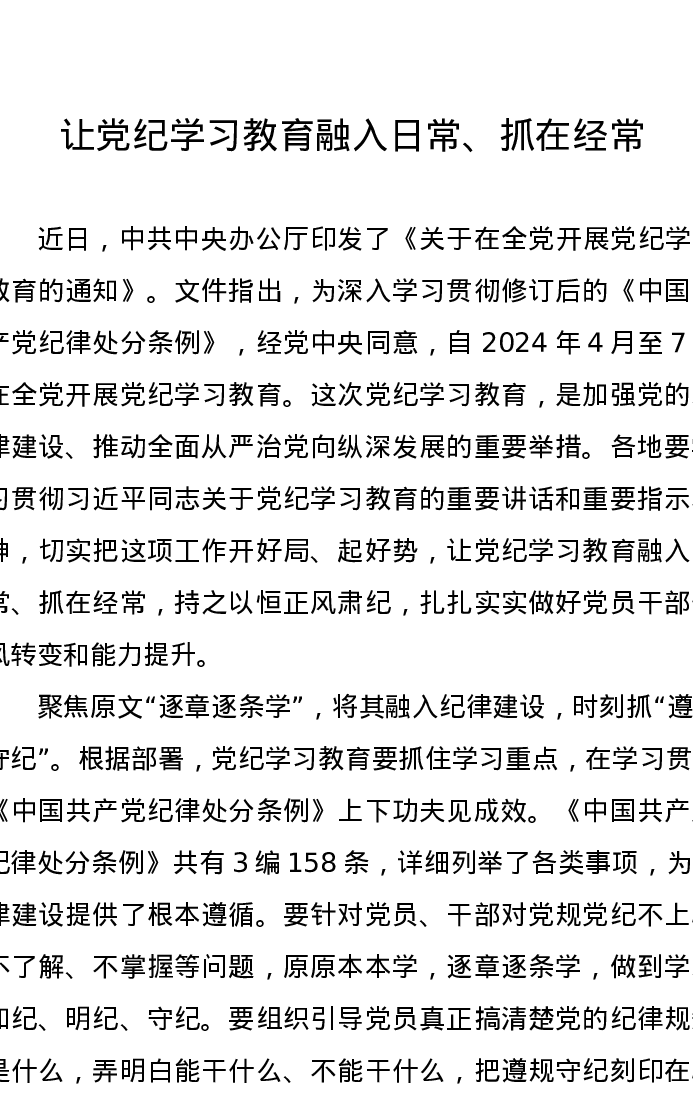党纪学习教育∣09学习交流:20240410让党纪学习教育融入日常、抓在经常