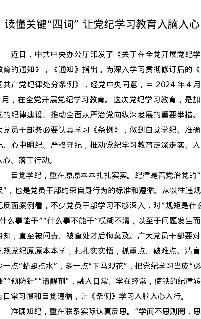 党纪学习教育∣09学习交流:20240410读懂关键“四词” 让党纪学习教育入脑入心