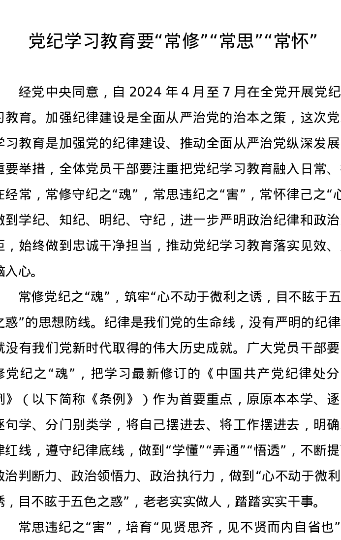 党纪学习教育∣09学习交流:20240411党纪学习教育要“常修”“常思”“常怀”