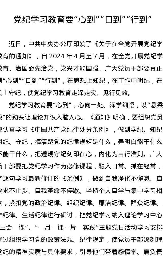 党纪学习教育∣09学习交流:20240411党纪学习教育要“心到”“口到”“行到”