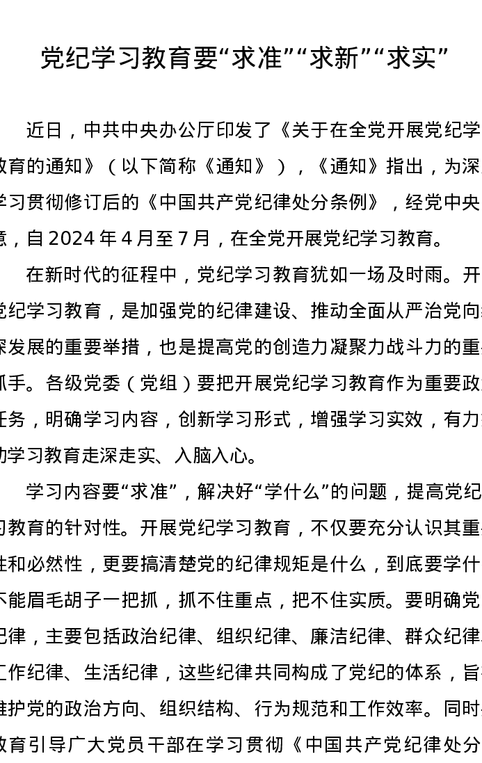 党纪学习教育∣09学习交流:20240411党纪学习教育要“求准”“求新”“求实”