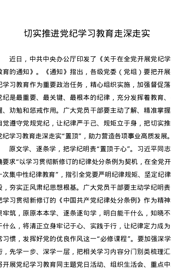 党纪学习教育∣09学习交流:20240411切实推进党纪学习教育走深走实