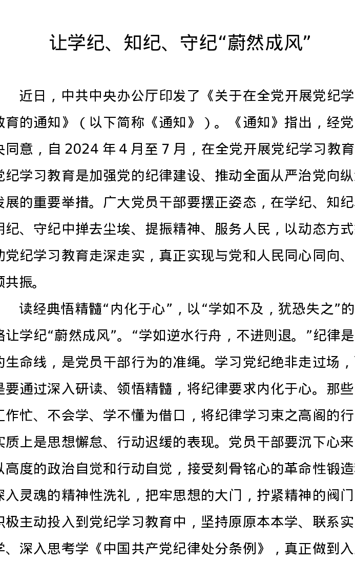 党纪学习教育∣09学习交流:20240411让学纪、知纪、守纪“蔚然成风”