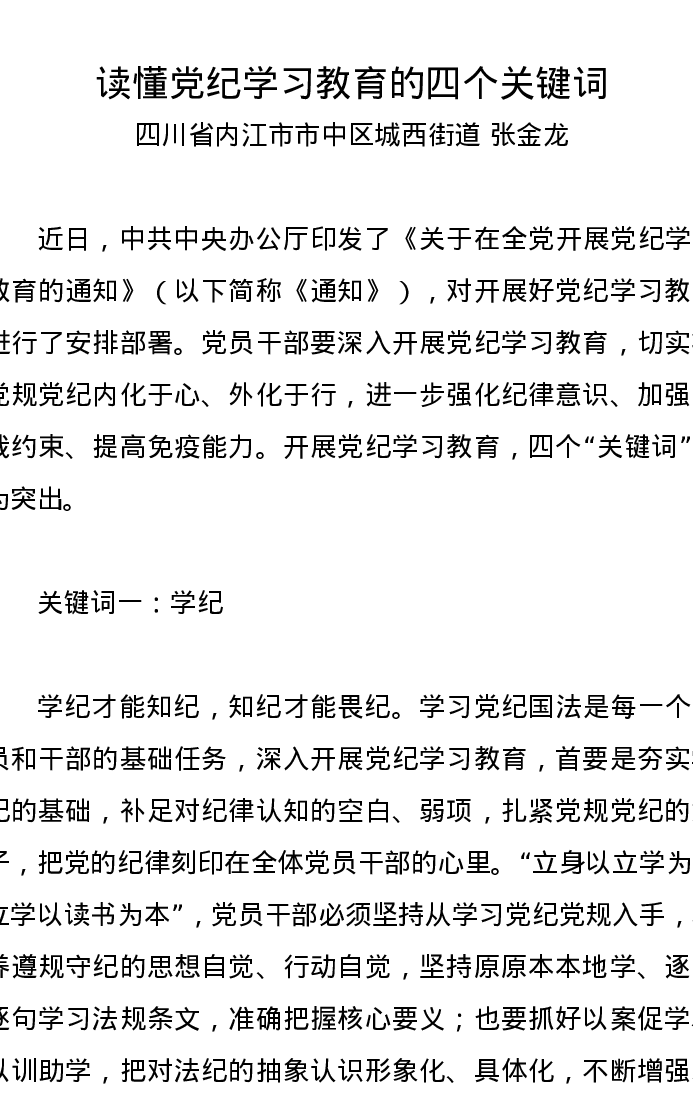 党纪学习教育∣09学习交流:20240411读懂党纪学习教育的四个关键词——四川省内江市市中区城西街道