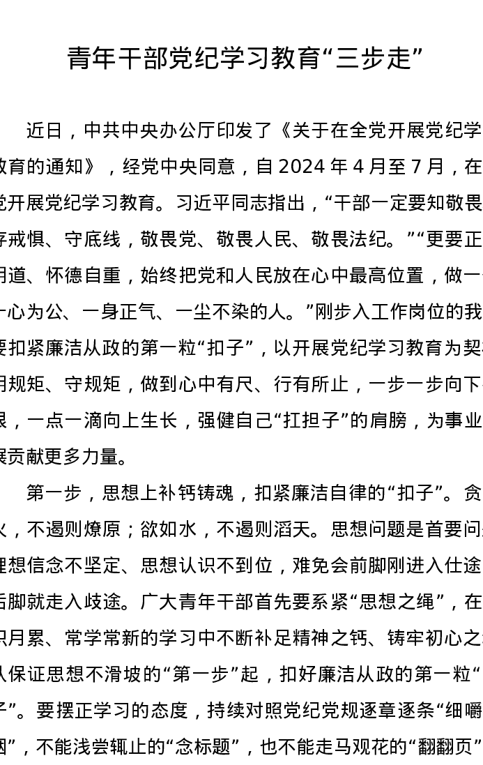 党纪学习教育∣09学习交流:20240411青年干部党纪学习教育“三步走”