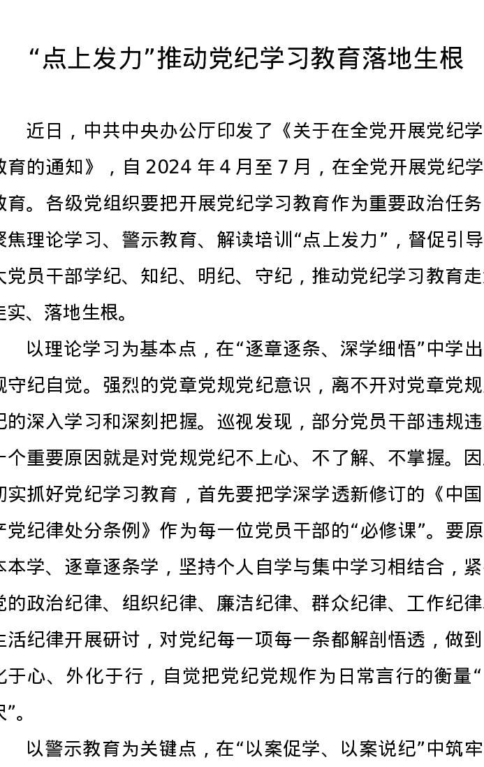 党纪学习教育∣09学习交流:20240412“点上发力”推动党纪学习教育落地生根