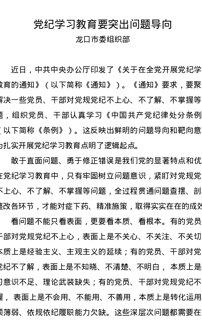 党纪学习教育∣09学习交流:20240414党纪学习教育要突出问题导向(龙口市委组织部)