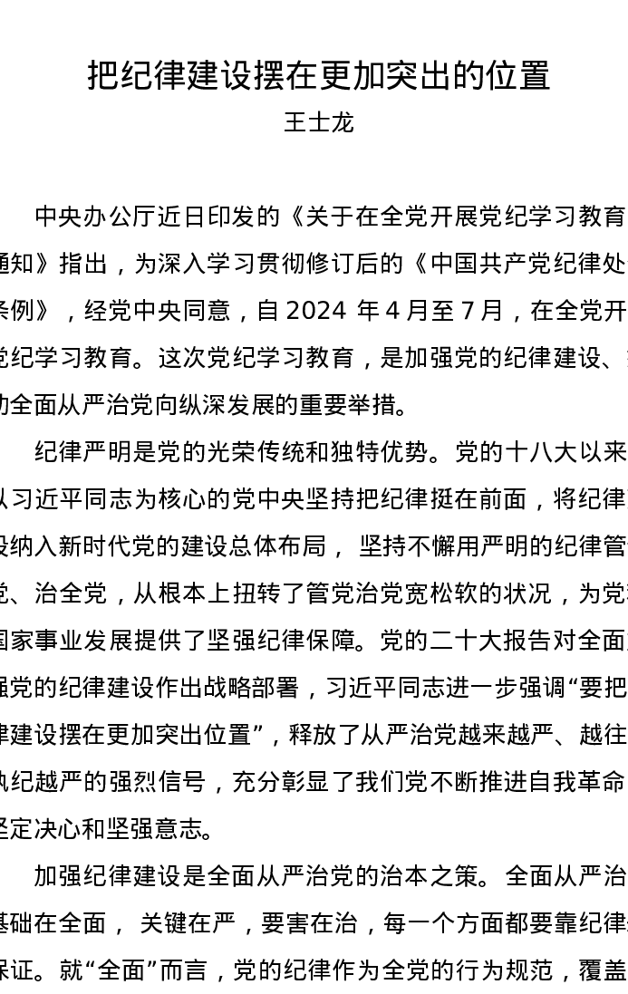 党纪学习教育∣09学习交流:20240414把纪律建设摆在更加突出的位置
