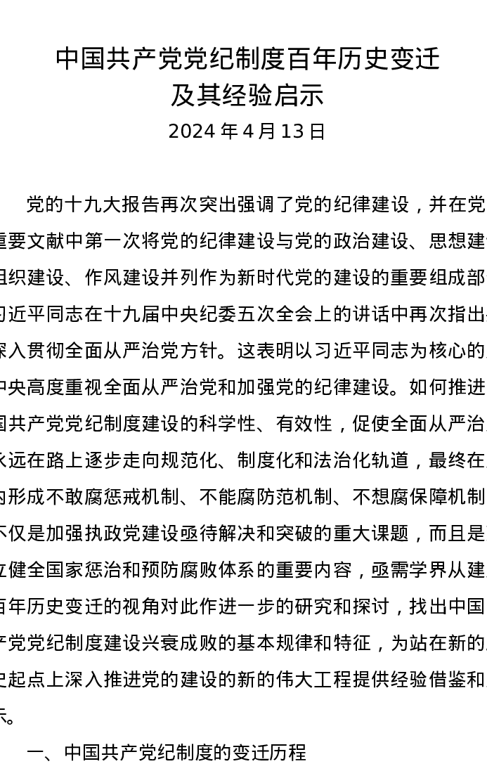 党纪学习教育∣11拓展学习:中国共产党党纪制度百年历史变迁及其经验启示
