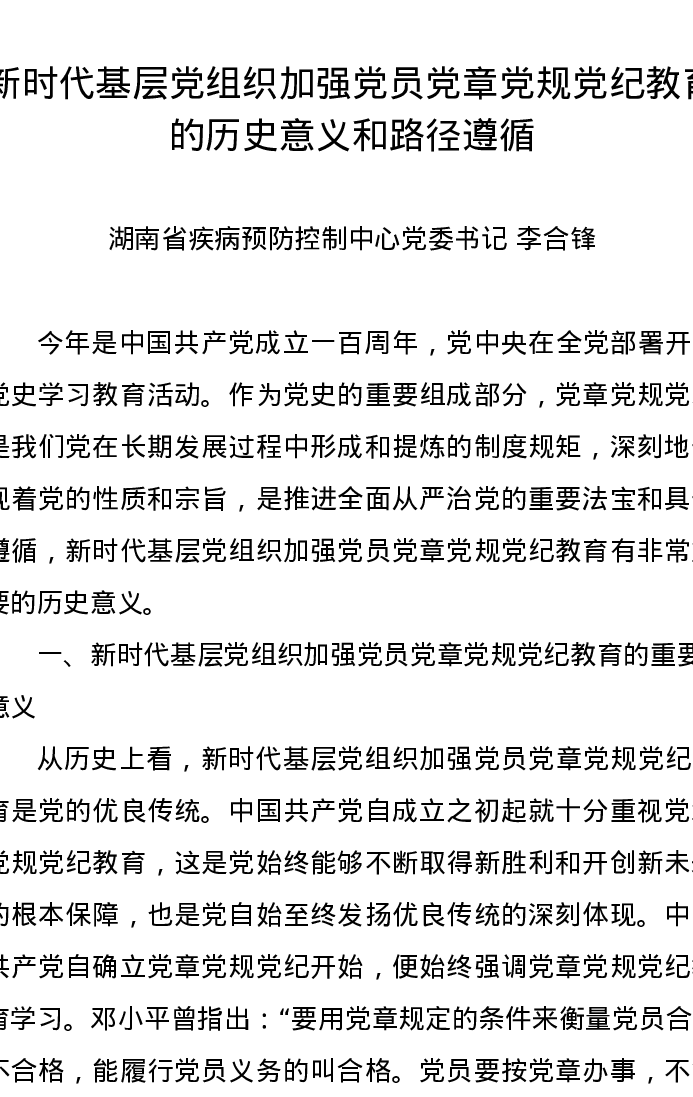 党纪学习教育∣11拓展学习:新时代基层党组织加强党员党章党规党纪教育的历史意义和路径遵循