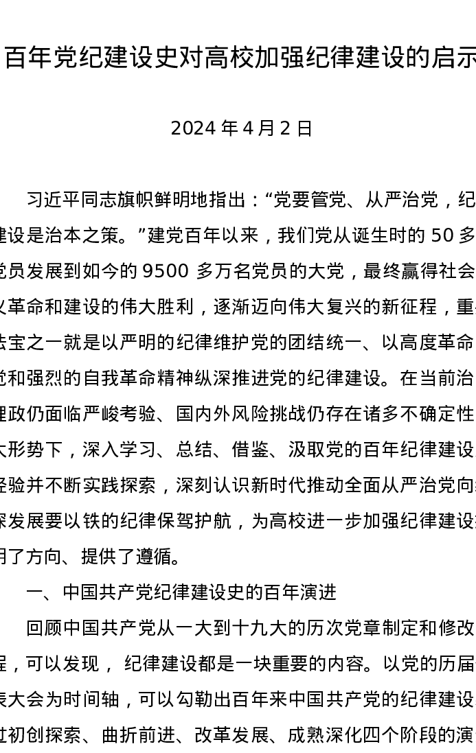 党纪学习教育∣11拓展学习:百年党纪建设史对高校加强纪律建设的启示