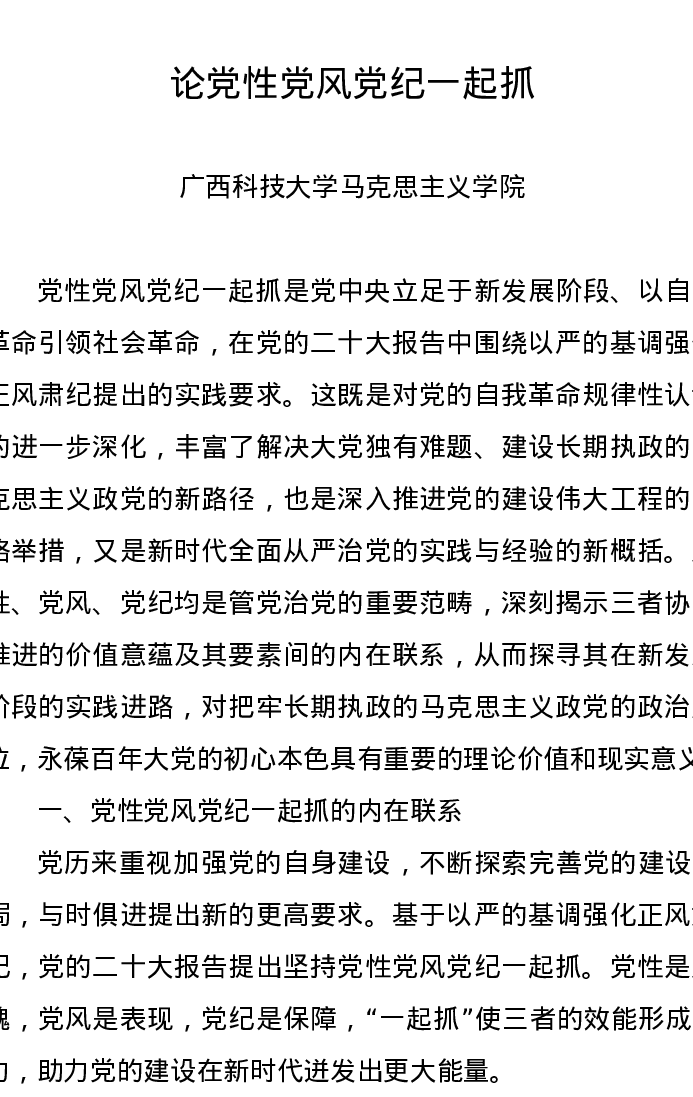 党纪学习教育∣11拓展学习:论党性党风党纪一起抓(广西科技大学马克思主义学院)