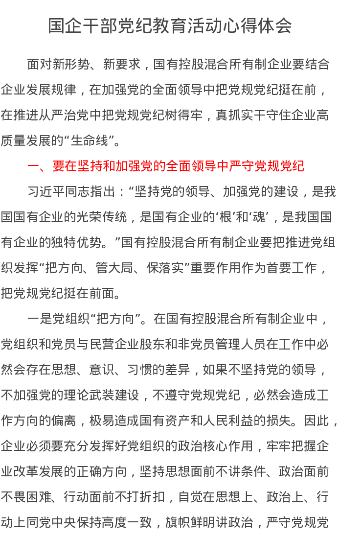 国企干部党纪教育活动心得体会