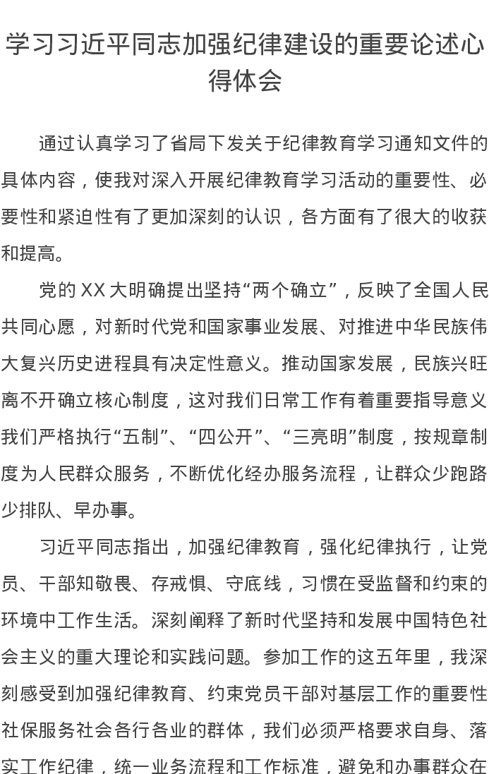 学习习近平总书记加强纪律建设的重要论述心得体会