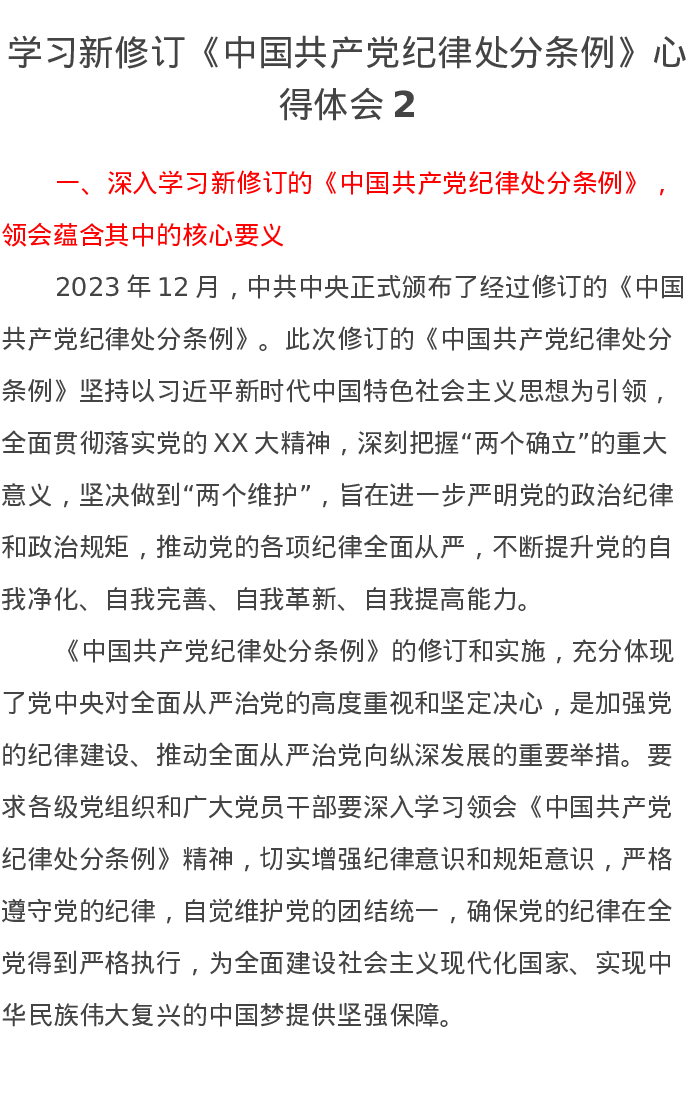 学习新修订《中国共产党纪律处分条例》心得体会2