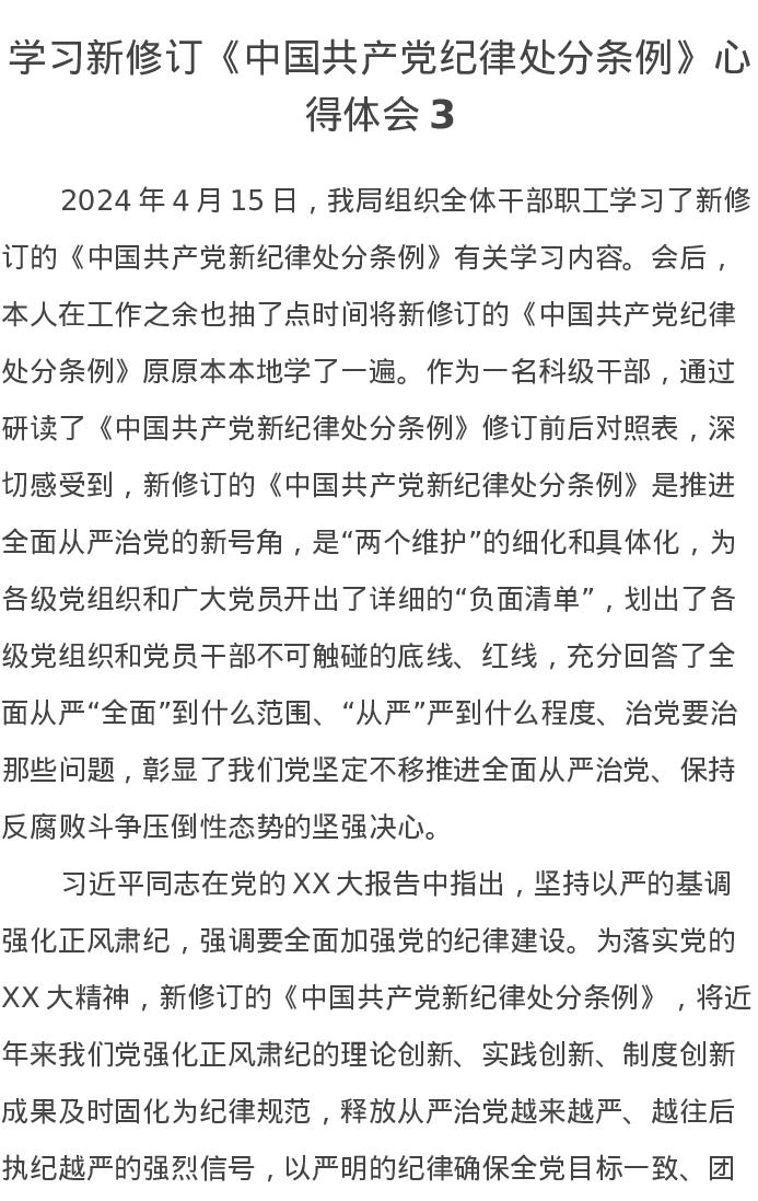 学习新修订《中国共产党纪律处分条例》心得体会3