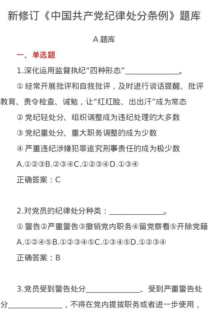 新修订《中国共产党纪律处分条例》题库2套