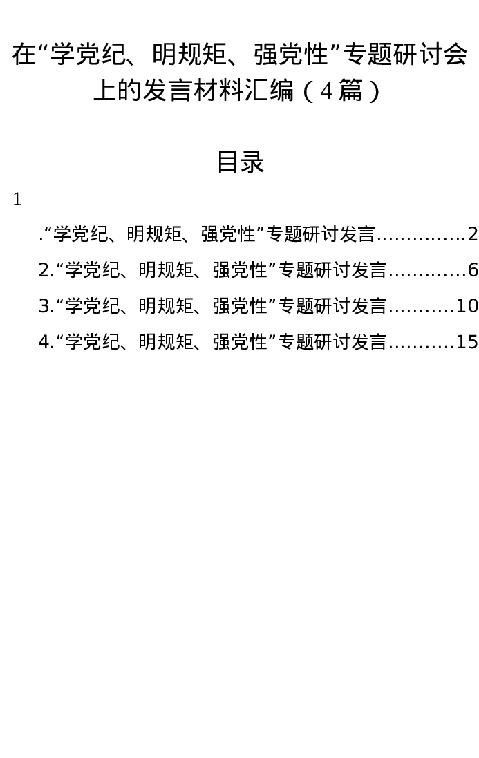 汇编:在“学党纪、明规矩、强党性”专题研讨会上的发言4篇