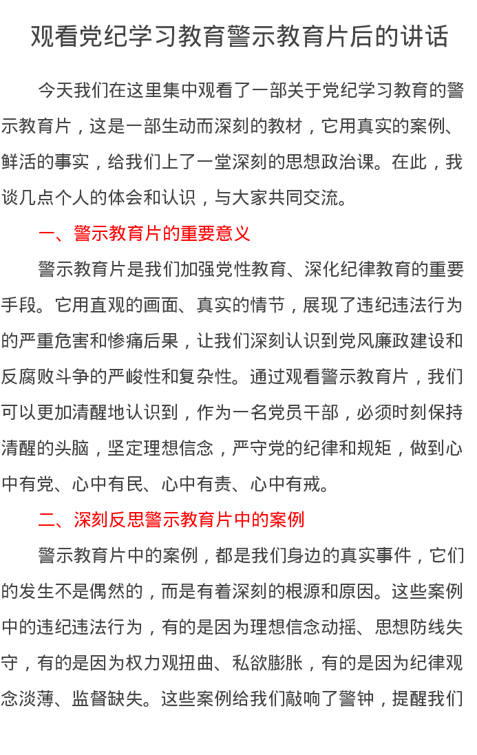 观看党纪学习教育警示教育片后的讲话