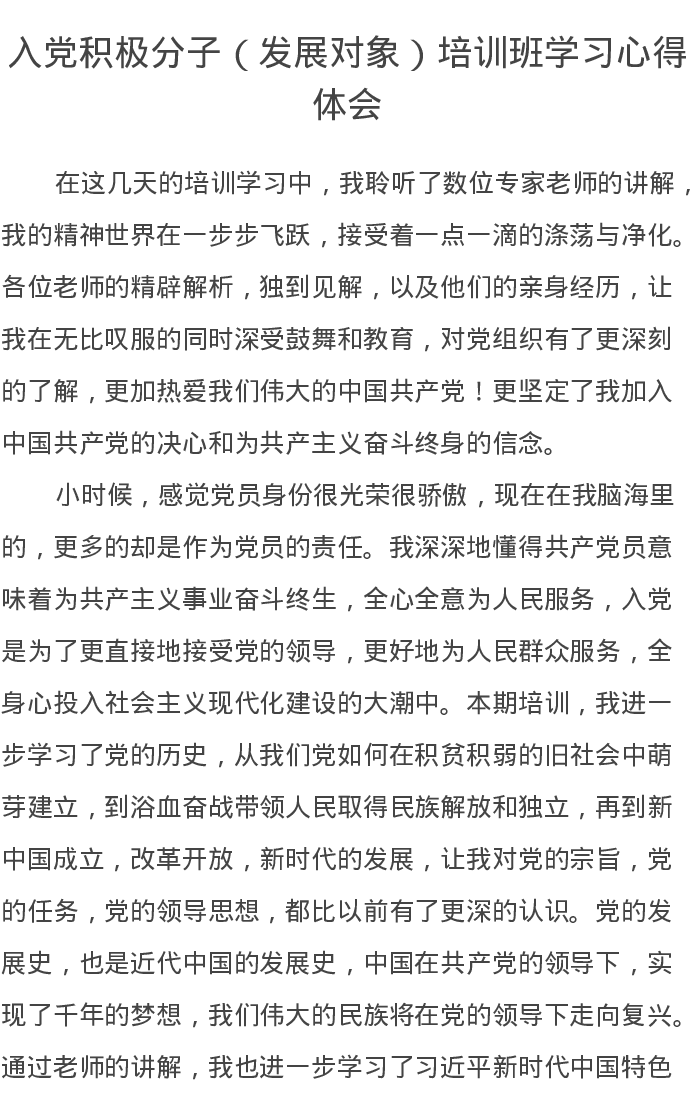 入党积极分子(发展对象)培训班学习心得体会2篇