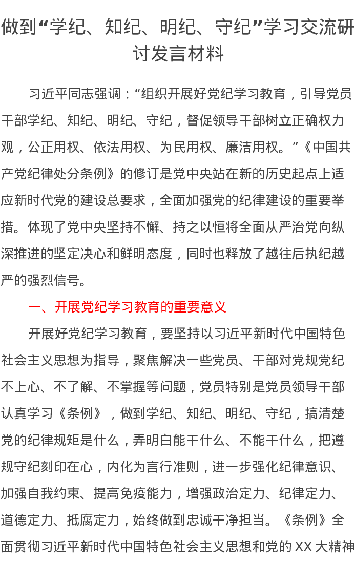 做到“学纪、知纪、明纪、守纪”学习交流研讨发言材料