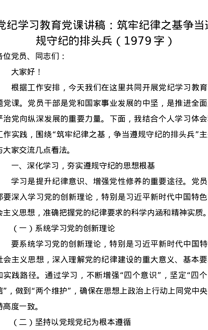 党纪学习教育党课讲稿:筑牢纪律之基争当遵规守纪的排头兵