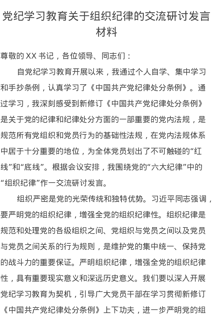 党纪学习教育关于组织纪律的交流研讨发言材料