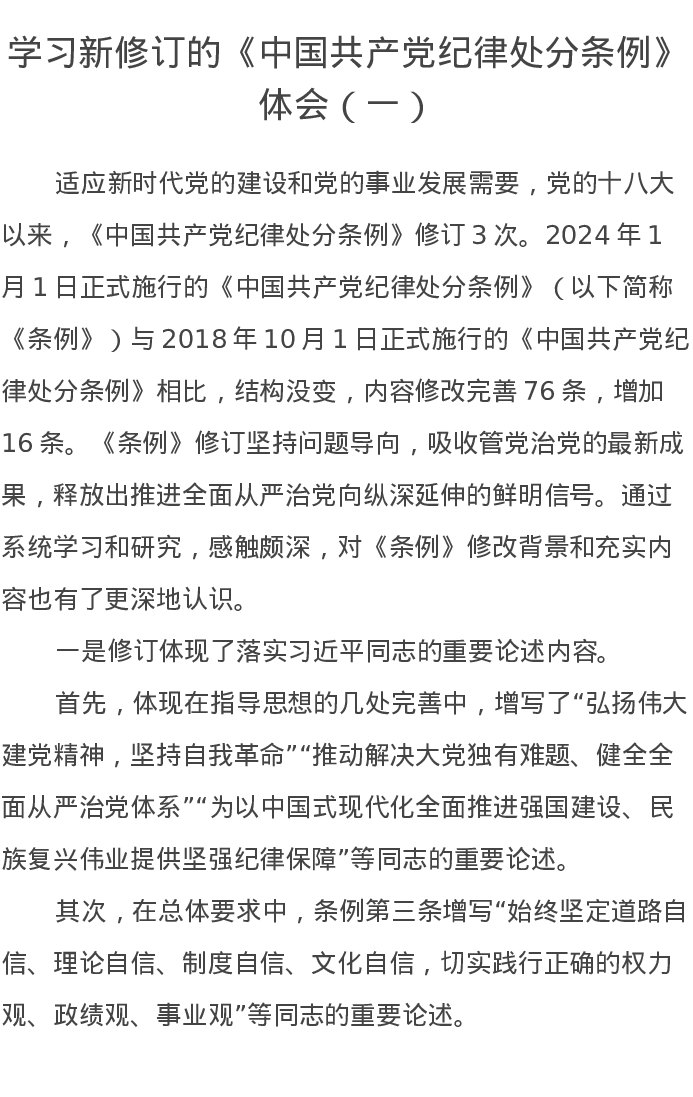 学习新修订的《中国共产党纪律处分条例》体会(一)