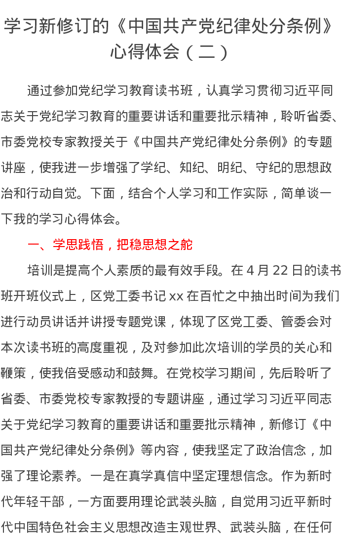 学习新修订的《中国共产党纪律处分条例》心得体会(二)