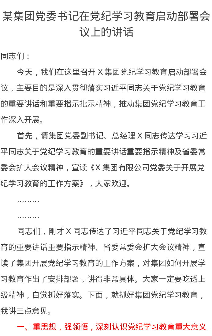 某集团党委书记在党纪学习教育启动部署会议上的讲话