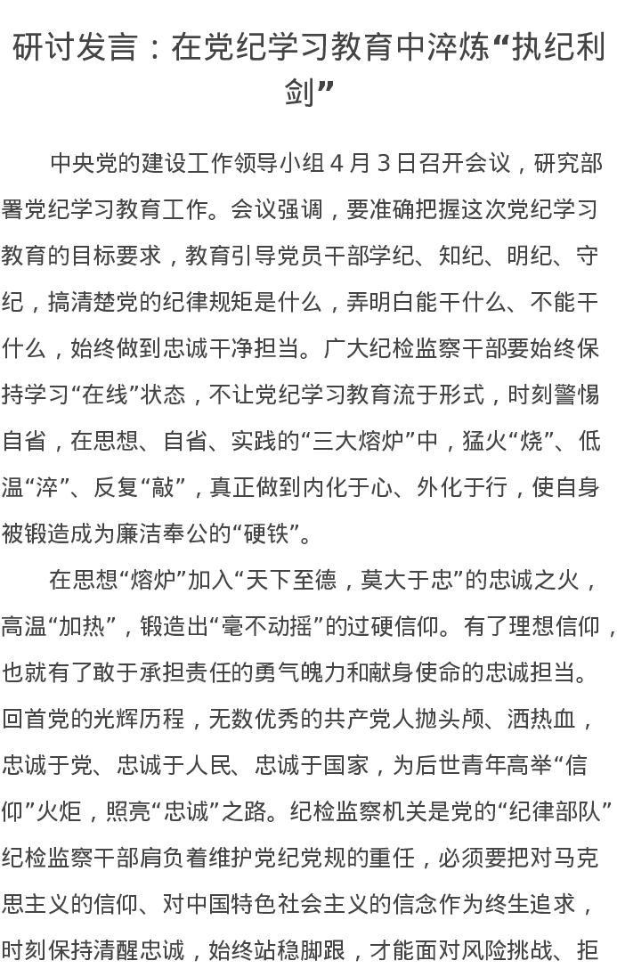 研讨发言:在党纪学习教育中淬炼“执纪利剑”