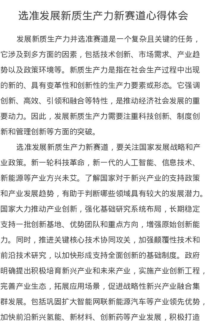 选准发展新质生产力新赛道心得体会