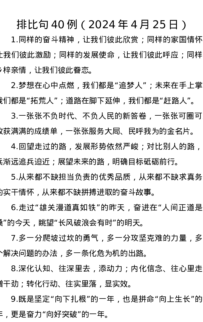 排比句40例(2024年4月25日)